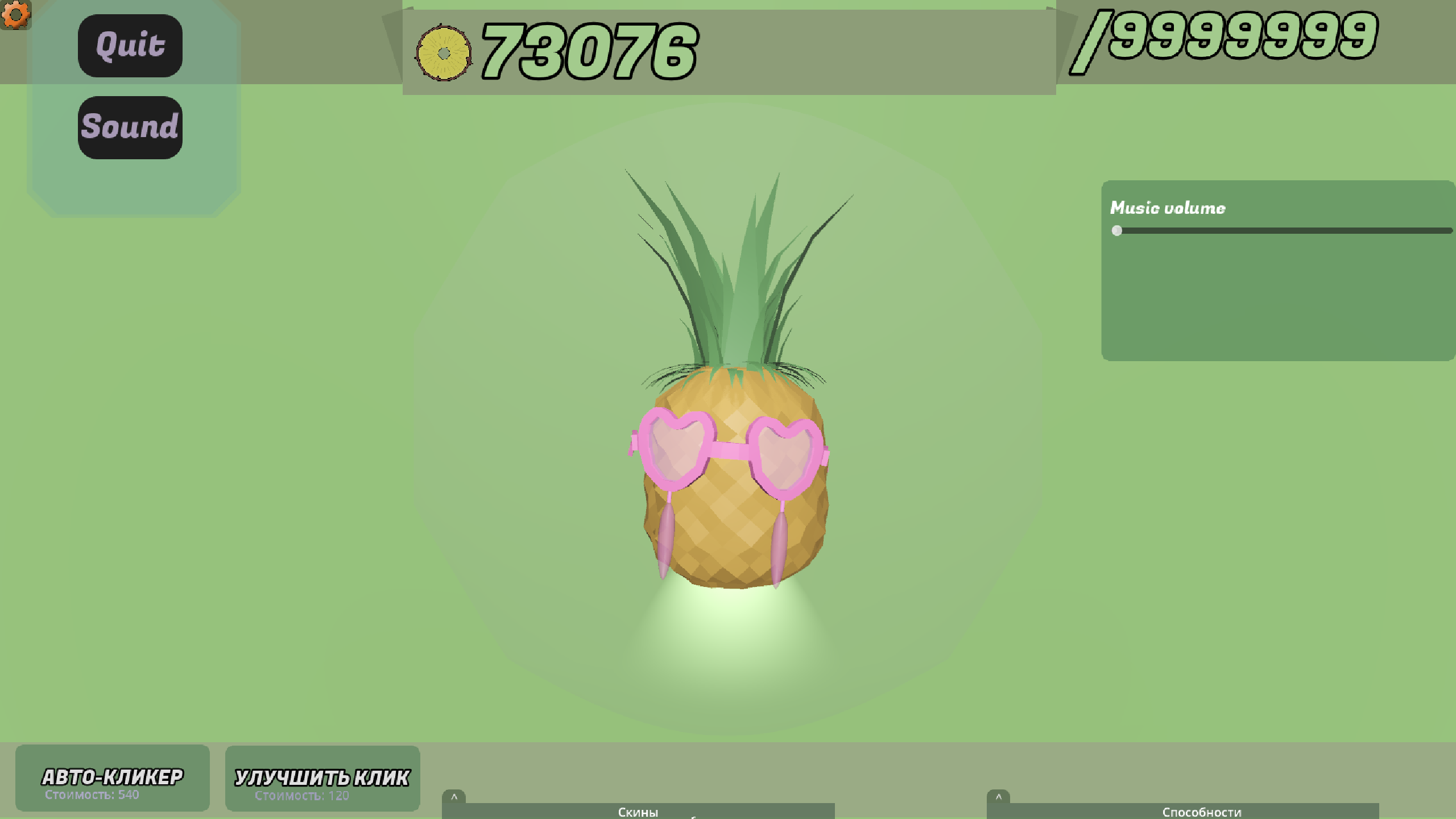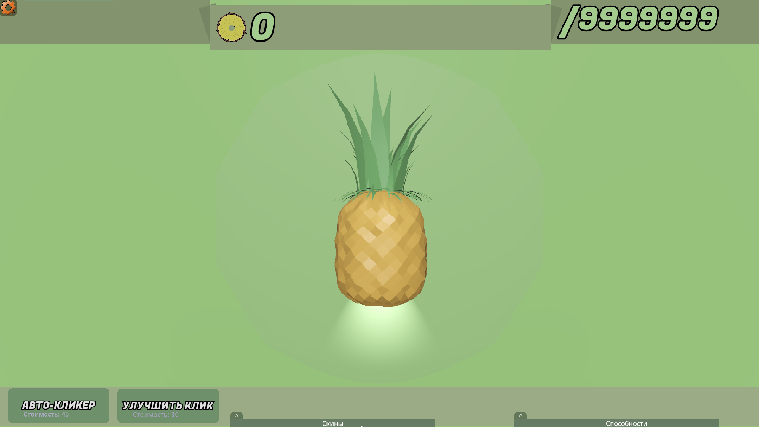This is a pineapple-themed clicker game. The core mechanic involves tapping on the pineapple to earn in-game currency. You can then spend this currency on various upgrades, abilities, and skins to progress further and increase your income.